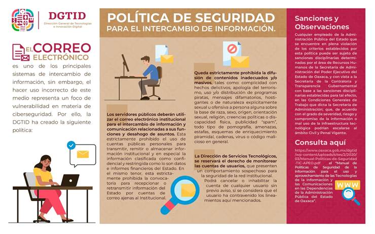 Evita ser víctima de un ciberataque poniendo en práctica las recomendaciones que la Dirección General de Tecnologías e Innovación Digital realiza a través de las infografías que se adjuntan a este correo.